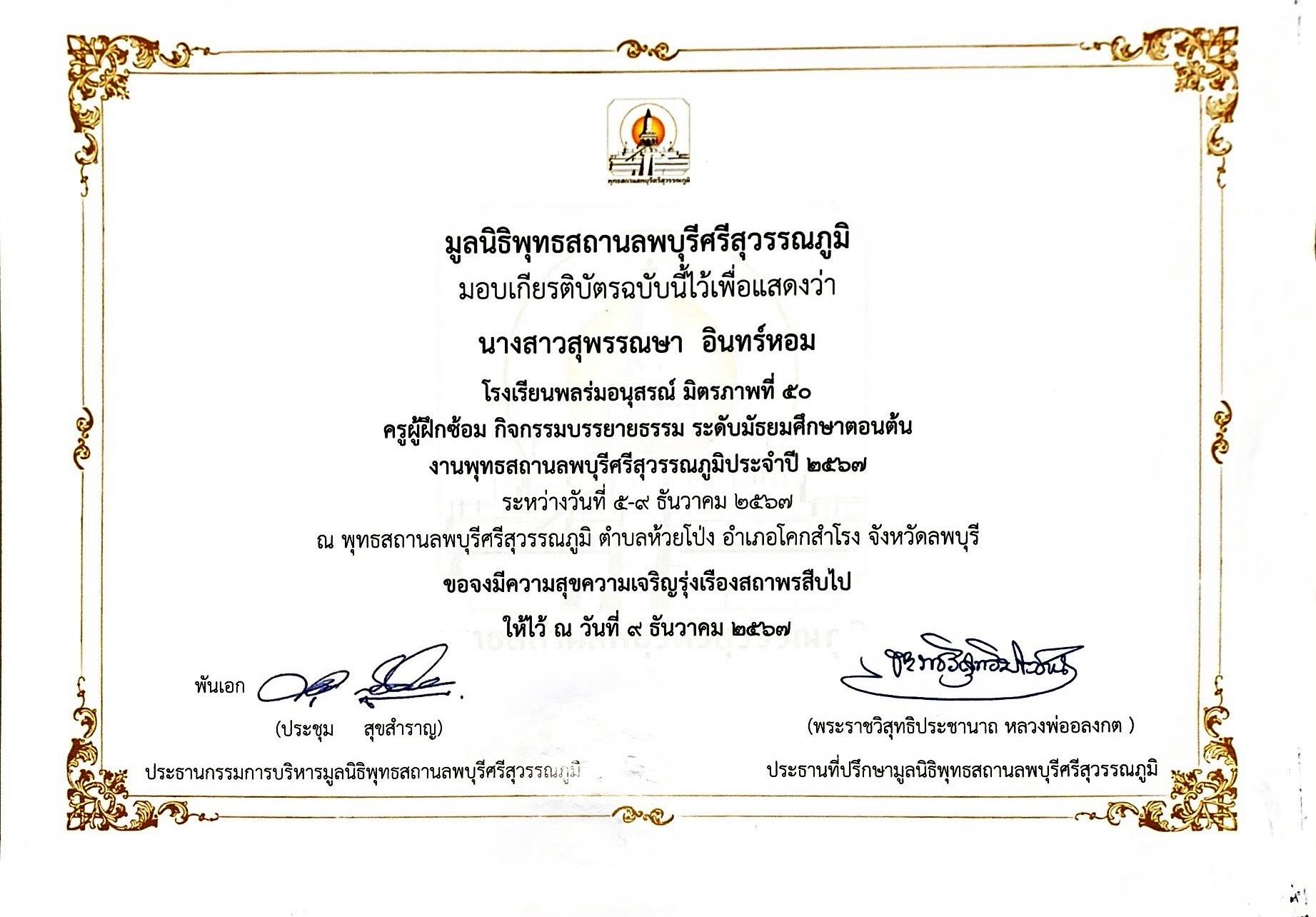 นางสาว สุพรรณษา อินทร์หอม |